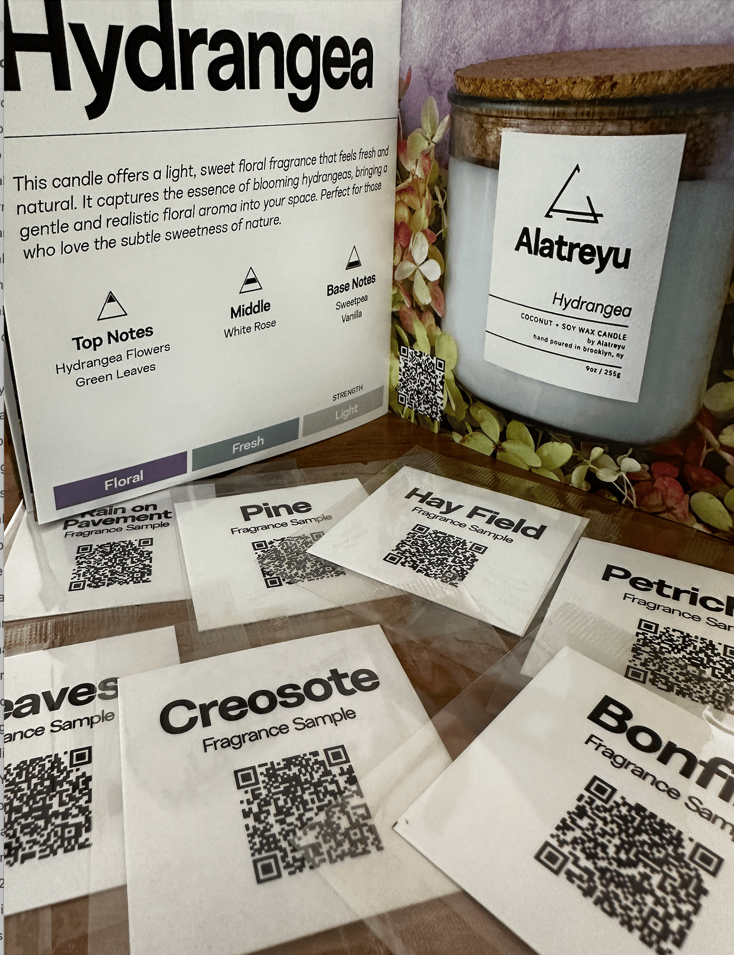 The company included scent samples on paper—just little strips with QR codes (see above).