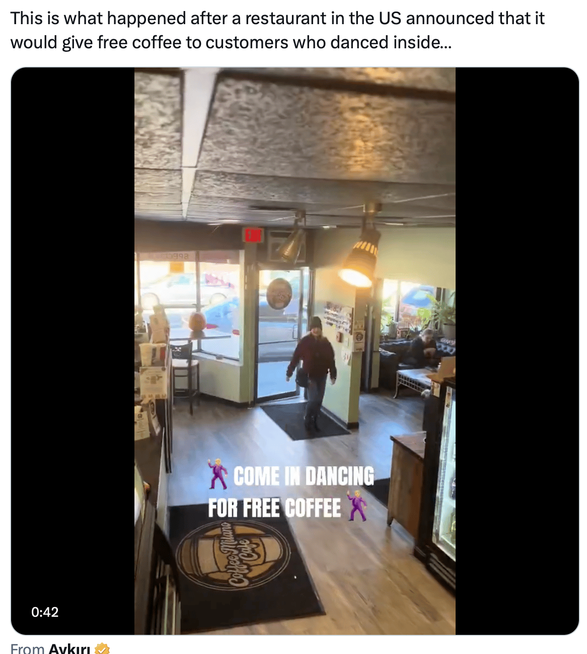 This shop offered free coffee if you came in...DANCING.